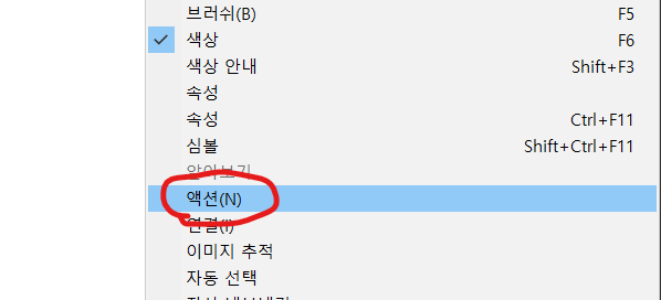 2. 일러스트에서 윈도우(Window) -> 액션(Action) -> 액션 불러오기